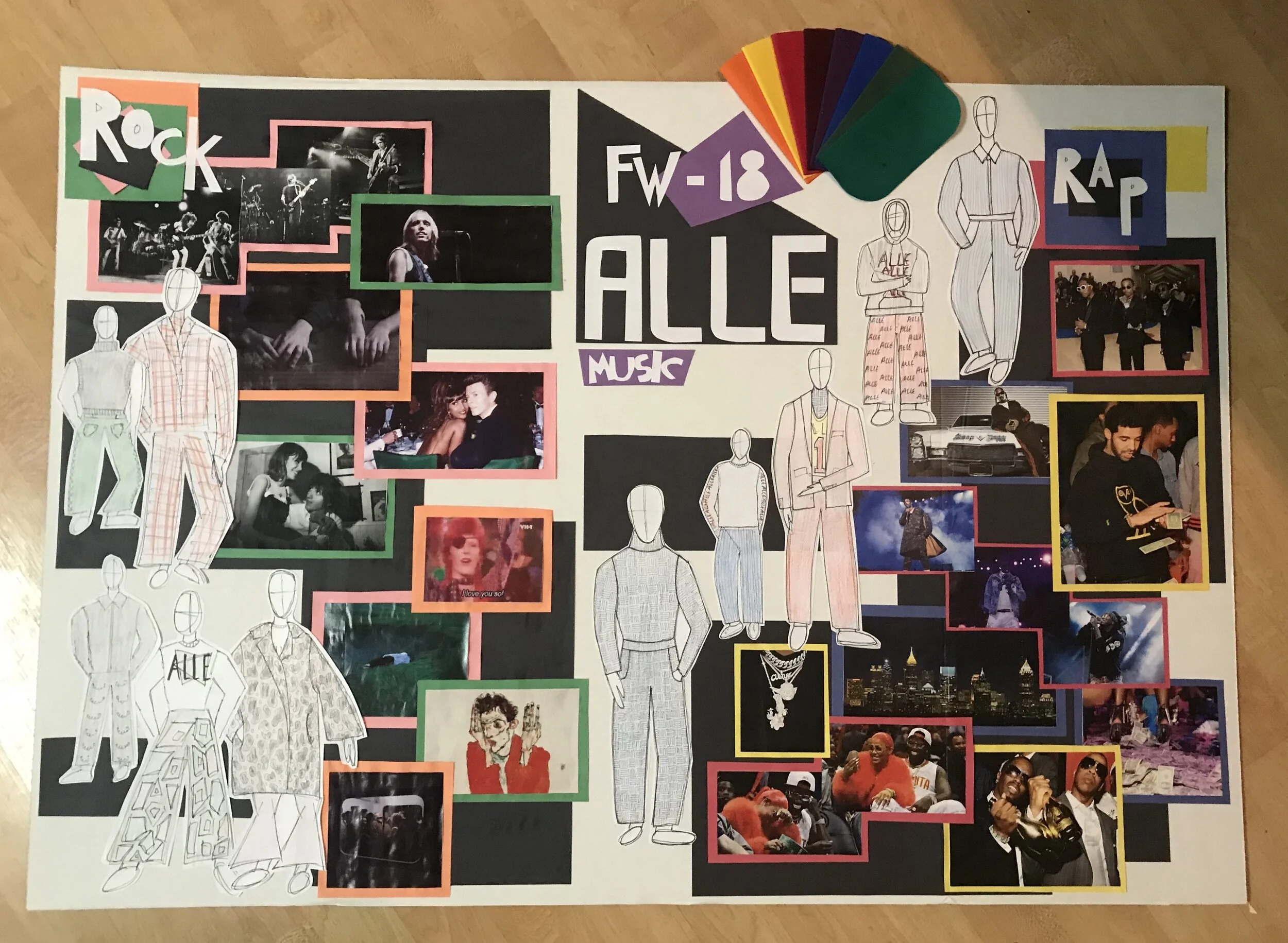 THESE COLLECTIONS WERE CREATED FOR AN APPAREL LINE DEVELOPMENT AND PRESENTATION COURSE. FOR THE PROJECT, INSPIRATION WAS TAKEN FROM THE DIFFERENT SUBCULTURES ASSOCIATED WITH RAP AND ROCK MUSIC.